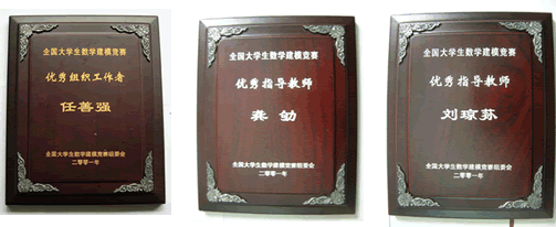 全国老员工数学建模竞赛优秀组织工作者:任善强,优秀指导教师:龚劬,刘琼荪,全国老员工数学建模竞赛组委会颁发, 2001 年;