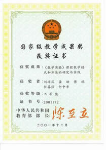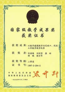 国家级教学成果二等奖“数学实验课程教学模式和方法的研究与实践”,国家教育部颁发, 2001.12 ,刘琼荪,龚劬,傅鹂,任善强,何中市;
